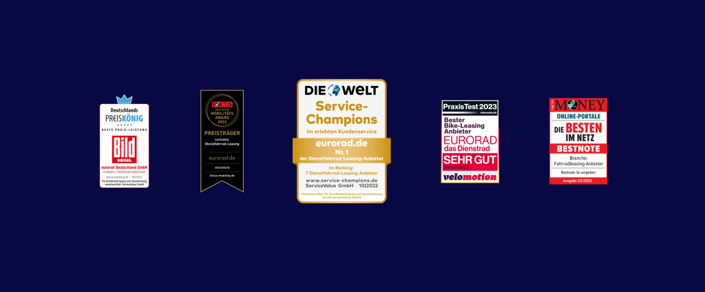 Auszeichnung für eurorad eurorad wurde von verschiedenen Testberichten als bester Bike-Leasing-Anbieter gekürt! Die Tageszeitung DIE WELT, das Magazin FOCUS MONEY mit dem Deutschland-Test und das Fahrrad-Magazin velomotion.de haben alle das Leasing-Angebot von eurorad als herausragend bewertet. Mit eurorad sind Sie beim Thema Bike-Leasing also gut für die neue Saison gewappnet! eurorad mit der besten Preisleistung bei 7 […]
